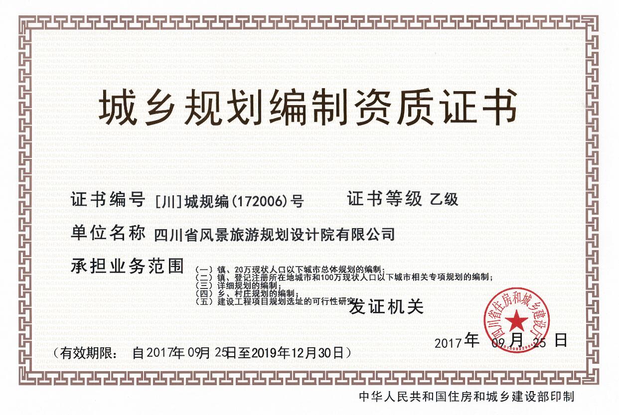 2017年10月10日,在全体员工的凝心聚力、紧密配合下,我院顺利通过四川省住房和城乡建设厅相关审核,成功获得“城乡规划编制乙级资质”。